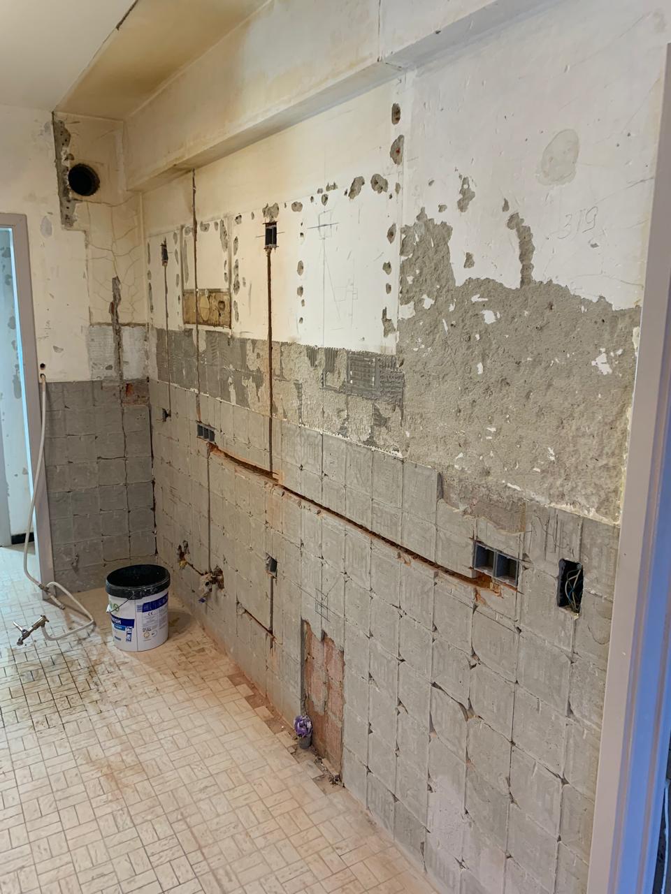 Conformément aux accords préalables et afin d’optimiser le budget, le client a réalisé lui-même certains travaux simples, tels que le retrait des anciens papiers peints, de la cuisine et des plinthes. Notre équipe est intervenue pour les travaux plus complexes, nécessitant une attention particulière, notamment en lien avec les réseaux techniques comme l’électricité et la plomberie, qui demandent des compétences professionnelles.